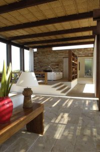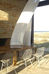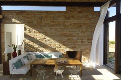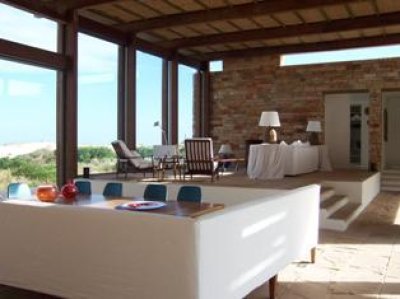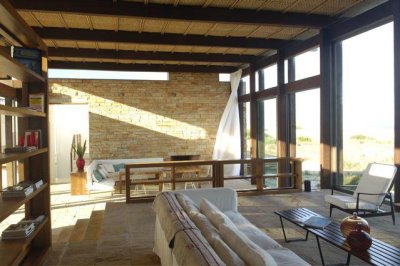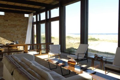 En un nivel principal se encuentra un gran living – comedor integrado con 2 hogares a leña, sus grandes ventanales hacia la playa dan luz a cada espacio y conectan hacia el exterior.