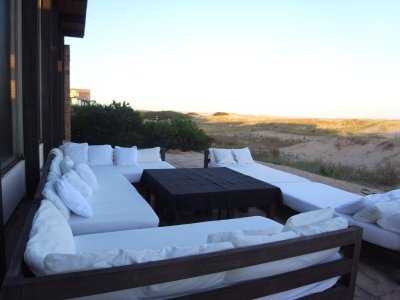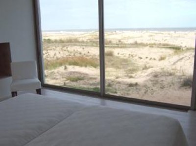 Al lado izquierdo se ubican 2 dormitorios en suite con vista al mar. Cocina totalmente equipada y barra para desayunos.
