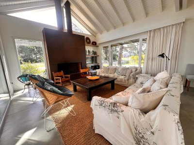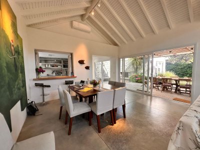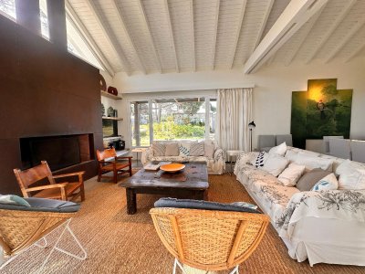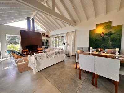 Muy linda casa de 4 dormitorios, 2 de ellos en suite. Amplios y luminosos espacios, distribuida en cocina, living comedor con estufa a leña, sumamente confortable.