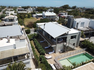 Espectacular casa ubicada a 300 metros de la playa brava con vista franca al mar y moderna construcción, ideal para disfrutar en invierno y verano. La propiedad cuenta con 540 m2 de terreno y 246 m2 edificados de muy buena calidad y diseño. Comodidades: 2 plantas. En planta baja se encuentran ubicados los 3 dormitorios más la dependencia de servicio.