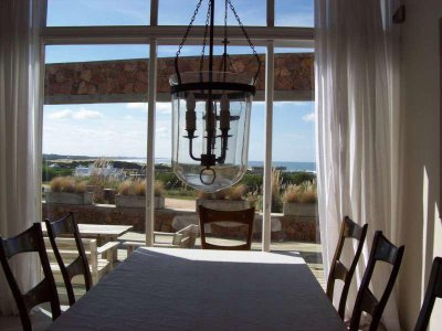Ubicada en la parte alta del club, esta gran casa tiene un luminoso living comedor integrado que a su vez se conecta con sus terrazas con sus grandes ventanales, permitiendo una gran vista al mar. Playroom con un gran sofá que puede hacer de dormitorio de huéspedes ya que cuenta con un baño completo. La cocina, muy bien equipada, se comunica con el parrillero y la zona de comedor exterior lo que facilita la organización de comidas al aire libre. Hacia el fondo de la casa encontramos, dos suites amplias y la mastersuite ocupa un lugar en la planta alta, donde la vista al mar, el pueblo y al faro es la protagonista. Cuenta con gran vestidor y un buen baño. Hacia la parte de atrás de la casa cuenta con un hermoso jardín y una pileta ideal para nadar, que está en unos de los costados de la casa. Fácil de vivir, bien equipada y resguardada del movimiento dentro del club, es de las mejores opciones para este verano.