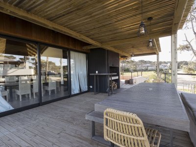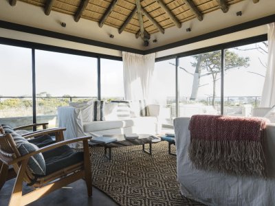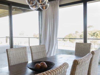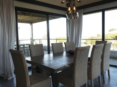 Distribuida en dos plantas: confortable living con vista y grandes ventanales, hogar a leña, comedor para 10 comensales, cocina con barra para desayunos.
