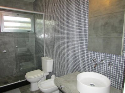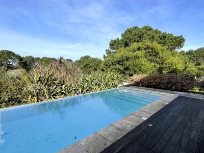 Al ingresar desde la calle se encuentran la cochera, la dependencia de servicio y el lavadero (Independientes).Planta baja: Cuenta con 3 dormitorios, todos en suite, el principal con vestidor, baño con doble bacha y bañera. Planta alta: Se encuentran el living-comedor con hogar a leña y Tv. Cocina completamente equipada, toilette social y acceso a terraza con parrillero.Todos los dormitorios con Tv LCD. Aire acondicionado en todos los ambientes. Losa radiante. Piscina climatizada.