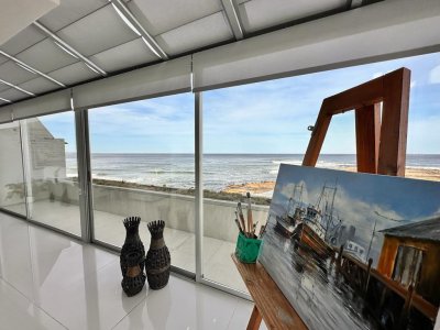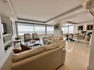 Ubicado frente al mar, sobre la primera linea de Playa Brava. A pocos metros de El Emir. Con una vista privilegiada de toda la península. Totalmente reciclado y muy bien equipado. Moderno y luminoso.Cuenta con 4 habitaciones en suite. Amplio living comedor y cocina integrada estilo americano. Toilette.Terraza en planta alta con la mejor vista y barbacoa. Cochera cerrada.