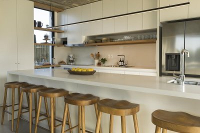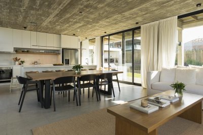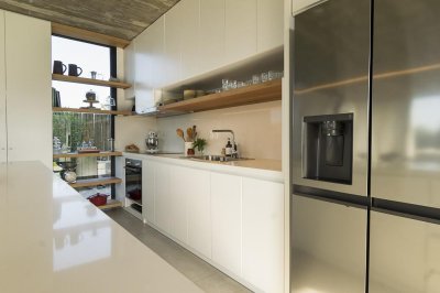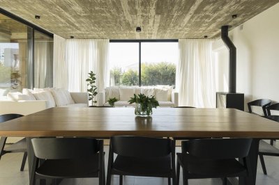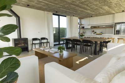 Distribuida en dos plantas, cálida y muy bien equipada, en planta baja cuenta con un amplio espacio social de living comedor con hogar a leña, cocina a la vista con isla para desayunos.