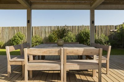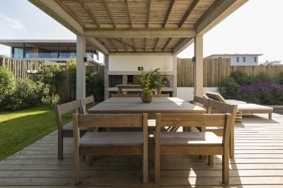Sector conectado a un hermoso exterior con jardín privado, piscina, deck y barbacoa con horno.