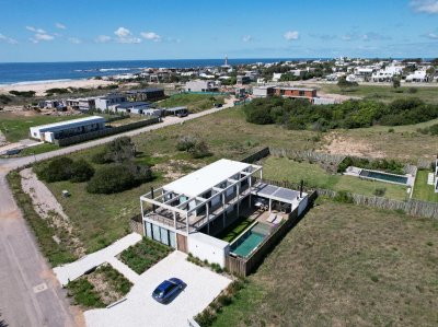 Moderna casa ubicada en José Ignacio, a pocas cuadras de Playa Brava y el mar. Cuenta con 4 Habitaciones en Suite y confortable diseño a estrenar.