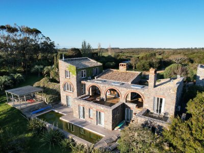 La propiedad de desarrolla en 5 Has, casa principal distribuida en dos grandes plantas, construcción solida de materiales nobles al mejor estilo toscano, en total armonía con su entorno. Diseño del Arq. Diego Montero.