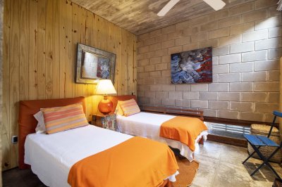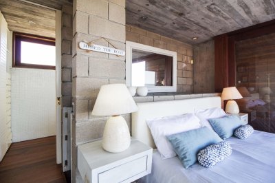 Separado por galería en deck, está el segundo módulo con dos cuartos que comparten un baño y otra suite principal con vista al mar.