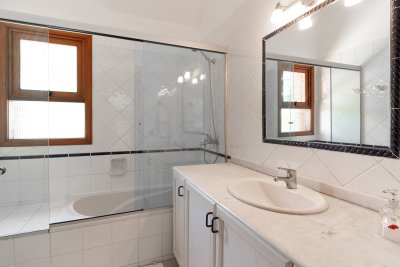 El exterior está diseñado para el disfrute, con un extenso jardín que combina una fuente central, pérgolas rodeadas de rosales y espacios que invitan al relax. La propiedad se distingue por su sólida construcción y acabados de alta calidad, convirtiéndola en una opción excepcional para vivir durante todo el año.