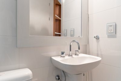 En este mismo piso, se encuentran tres dormitorios en suite (dos con orientación oeste y uno al este), todos con placares empotrados. Además, dispone de una cocina definida con lavadero y dependencia de servicio, así como un toilette de cortesía.