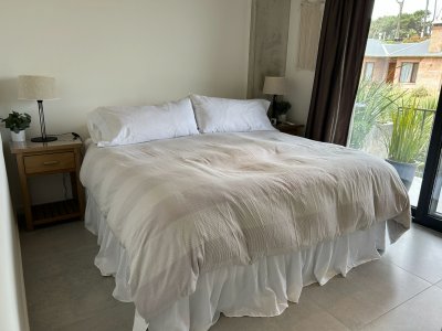 Depto nuevo súper luminoso, Unidad 104 el córner de las 2 esquinas vista sin obstrucción- 2 cuartos con 2 baños – 1 cuarto en suite con cama King – 2 do cuarto con 2 camas twin – y baño completo en el pasillo – Living, comedor y cocina, totalmente equipado y todo nuevo – ventanales de piso a techo, 3 equipos de aires acondicionados, Tv Cable, vajilla completa, microondas, lavarropas, heladera, caja de seguridad, balcón terraza grande con Parillero incluido – Piscina Climatizada – Estacionamiento para 1 coche.