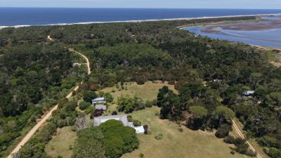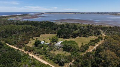 Propiedad en El Caracol, Rocha. El terreno cuenta con una superficie de 24.227 m2. La misma posee dos casas, una principal de 335 m2 y una para invitados de 40 m2. Ademas posee un galpón de 50 m2.